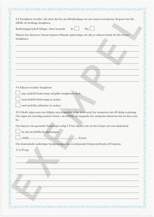Blankett med kopia. Köpehandling med obligatoriskt formkrav. Format: A4
