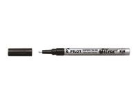 Pilot Super Color är en märkpenna med tunn spets som ger djupa, starka färger och kan användas på nästan vilken yta som helst. Pilots Super Color-märkpenna ger klara och täta linjer som gör att det du skriver eller ritar sticker ut. Du kan använda den på nästan alla ytor, inklusive glas, trä, metall, plast och gummi. Märkpennan har en tunn spets som producerar en linje på 1,0 mm och gör den perfekt för uppgifter som kräver noggrannhet. Dessutom innehåller den ett speciellt xylenfritt bläck som inte luktar så starkt, vilket gör den mycket trevligare att skriva med. Märkpennan har en slimmad lättviktsdesign som gör det avslappnat och otvunget att använda den. - Permanent bläck - Med huv - Rund spets - Spetsbredd: 3,0 mm - Linjebredd: 1,0 mm - Textfärg: Silver